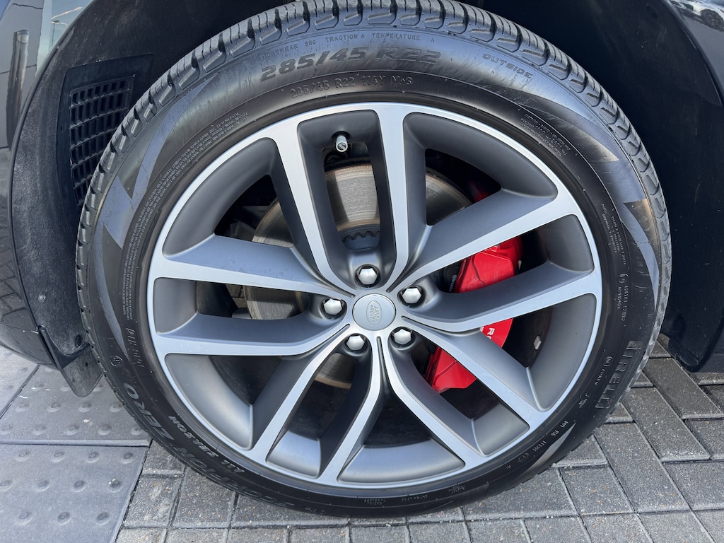 Dressed in a commanding Santorini Black Metallic, this Range Rover Sport makes an undeniable statement. The exterior is further enhanced by the Black Exterior Pack and distinctive 22" Style 5127 Diamond Turned wheels with Satin Dark Grey contrast, perfectly complemented by bold Red Brake Calipers.